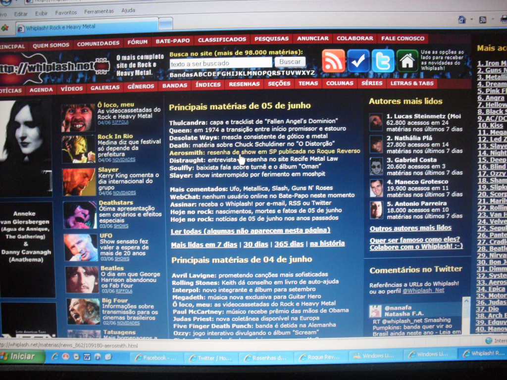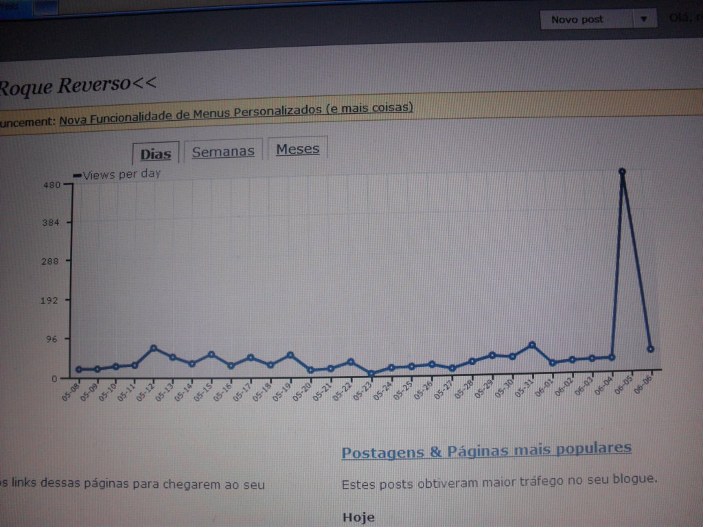 Sábado foi um dia especial para o Roque Reverso, já que o blog, criado no final de novembro do ano passado, bateu seu recorde de acessos em um único dia. Tudo por conta de uma resenha que nós fizemos sobre o show do Aerosmith e que o conceituado site Whiplash! aproveitou para citar em sua página inicial, depois de nossa total recomendação e autorização. Após essa citação, nosso medidor de audiência simplesmente disparou e nossa média de visualizações foi simplesmente multiplicada por 15!!!