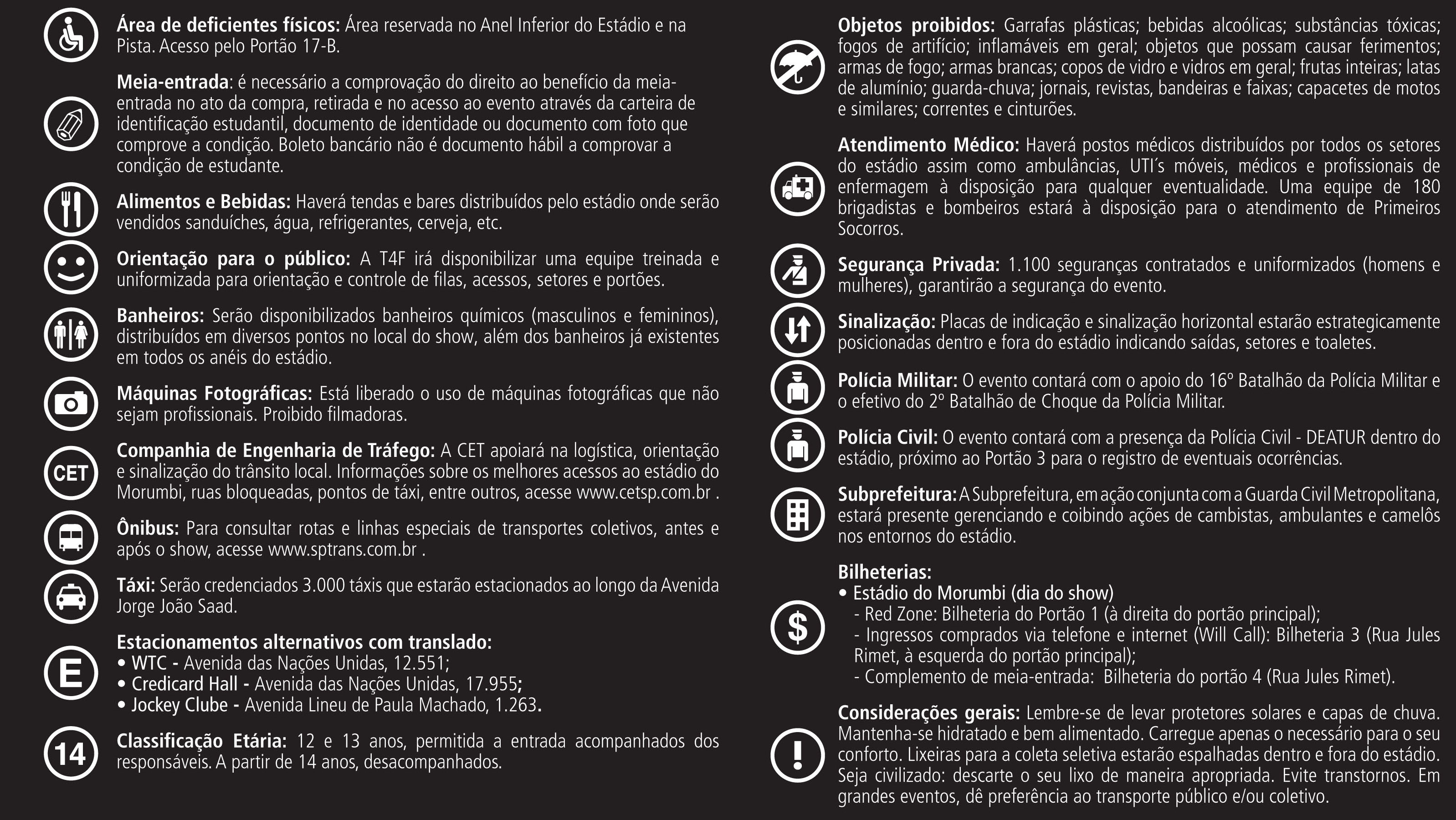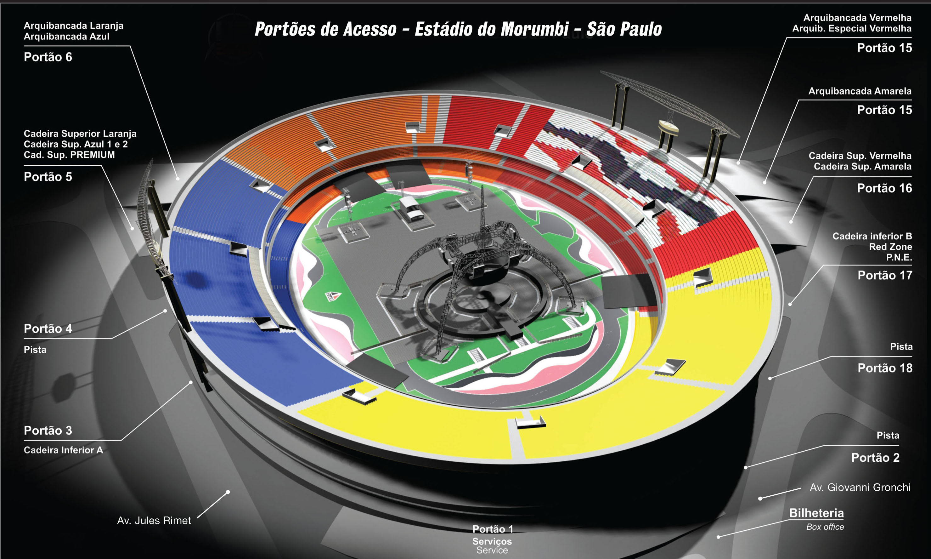 A Time For Fun, organizadora do show, divulgou à imprensa o desenho com o layout da divisão dos locais no estádio, além de uma lista de recomendações para o público que vai aos shows em São Paulo. Veja abaixo todos os detalhes. Para a visualização melhor, clique nas imagens: