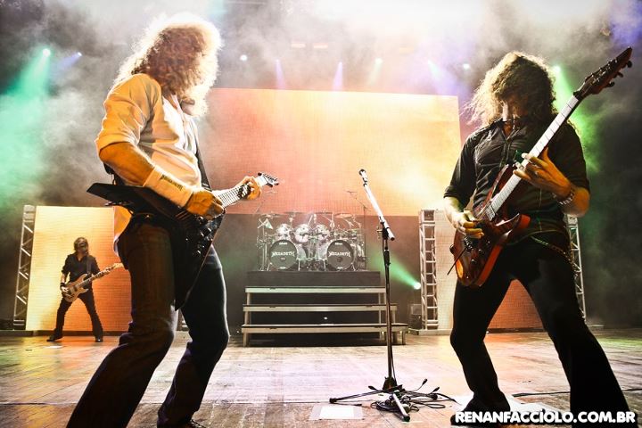 Empunhando aquela linda guitarra com o desenho do álbum “Rust in Peace”, o líder da banda, prestes a completar os 51 anos, mostrou que ainda pode proporcionar grandes momentos sonoros, apesar da cirurgia que fez no pescoço em 2011.