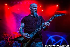 Após a pausa para o descanso, o bis trouxe Frank Bello e Scott Ian mandando ver nos vocais em “I’m The Man”. A eterna mistura inusitada entre rap e thrash foi complementada por mais uma grande homenagem da noite, desta vez ao falecido Jeff Hanneman, do Slayer. Com um trecho do petardo “Raining Blood”, o eterno guitarrista foi lembrado de maneira digna no HSBC pelos companheiros de Big Four.