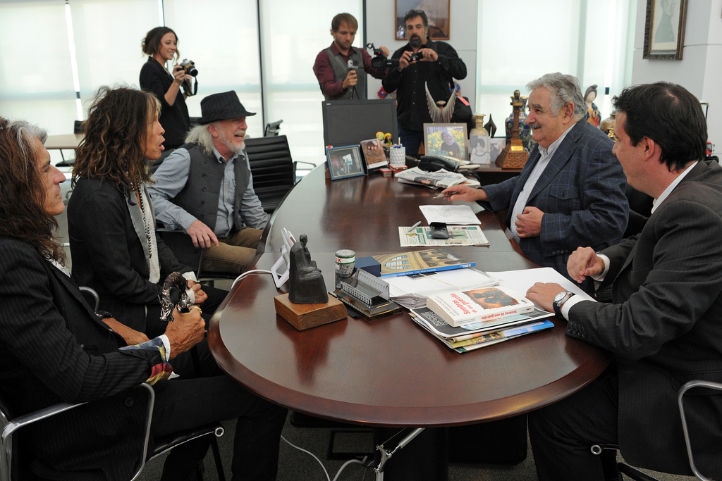Apenas alguns dias depois de ter tocado para algumas moscas e meia dúzia de lagostas na Costa Rica, o Aerosmith seguiu sua turnê pela América Latina e foi parar no Uruguai, lar de José “Pepe” Mujica, o presidente mais roquenrow da atualidade. A banda norte-americana fez questão de tentar uma audiência com o carismático presidente uruguaio. E conseguiu, assim como acontece com qualquer um que tente.