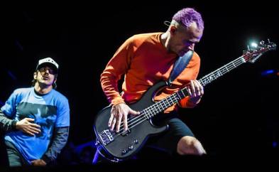 Para variar, Flea foi o destaque do show. Com sua tradicional performance alucinada e simpática, ele até plantou bananeira durante a apresentação e mostrou toda a sua técnica no instrumento onde é rei. “Eu rolaria pelado em um campo cheio de cactos por vocês”, disse para a plateia no intervalo de uma das músicas executadas.