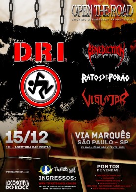 Para quem já estava empolgado com a volta do D.R.I para São Paulo, o show que está agendado para o dia 15 de dezembro no Via Marquês terá outros ingredientes interessantes. Tudo porque a abertura da apresentação da banda norte-americana será feita pelo Ratos de Porão, pela banda brasiliense Violator e pelo britânico Benediction.
