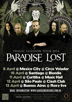 Os shows do Paradise Lost fazem parte da “Tragic Illusion Tour 2014”. A turnê segue na divulgação do álbum “Tragic Idol”, de 2012, e da coletânea “Tragic Illusion 25″, que foi lançada em 2013 para comemoração dos 25 anos de carreira da banda.
