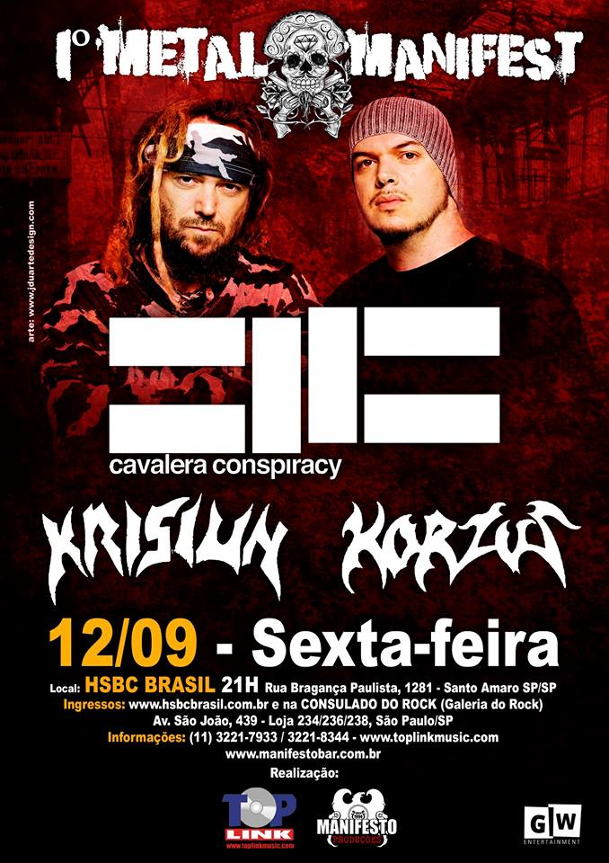 Esta será a quarta passagem do Cavalera Conspiracy pelo Brasil. Em 2010, no SWU Festival, o show do grupo foi colocado num horário que impediu quem trabalhou no dia de ver a banda pela primeira vez no País. Era uma segunda-feira, véspera de feriado, e o horário agendado ficou para antes das 19 horas, algo impensável para quem trabalhava em São Paulo e precisava pegar a Marginal Tietê para chegar a Itu, local do festival.