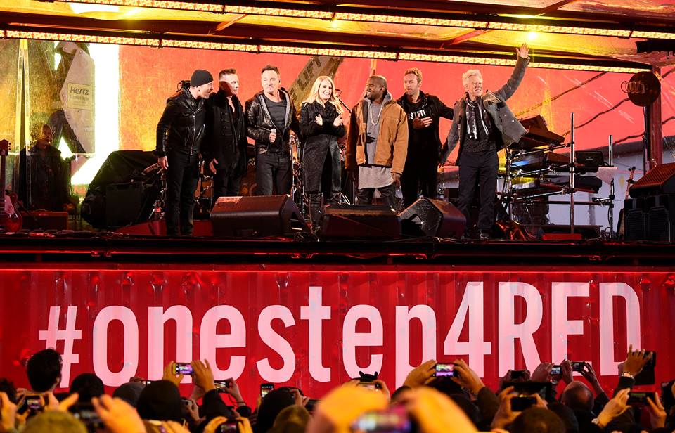 Bruce Springsteen e o vocalista do Coldplay, Chris Martin, substituíram Bono Vox em show surpresa que o U2 realizou na Times Square, em Nova York, na noite de segunda-feira, dia 1º de dezembro, quando astros se reuniram em celebração ao Dia Mundial da Luta Contra a Aids.