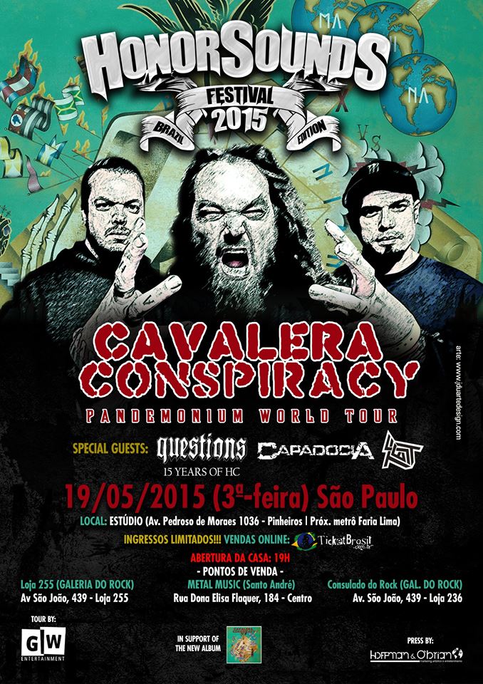 O Cavalera Conspiracy retornará ao Brasil em maio para mais uma turnê. A banda dos irmãos Max e Igor, fundadores do Sepultura, tocará no dia 19 de maio, em São Paulo, no Estúdio, como atração principal do HonorSounds Festival, que contará ainda com os grupos brasileiros Questions, Capadocia e Test.