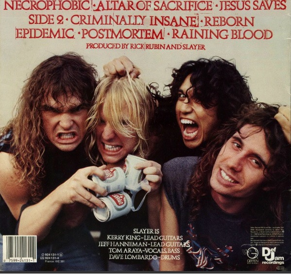 Há outras mudanças importantes para a carreira do Slayer com “Reign in Blood”. É o primeiro trabalho do grupo numa gravadora grande, a Def Jam. Também traz a primeira experiência com o produtor Rick Rubin, que acompanharia a banda em outros diversos trabalhos. Como engenheiro de som, está ninguém menos que Andy Wallace, que produziu na sequência diversos discos importantes de outros nome do rock.