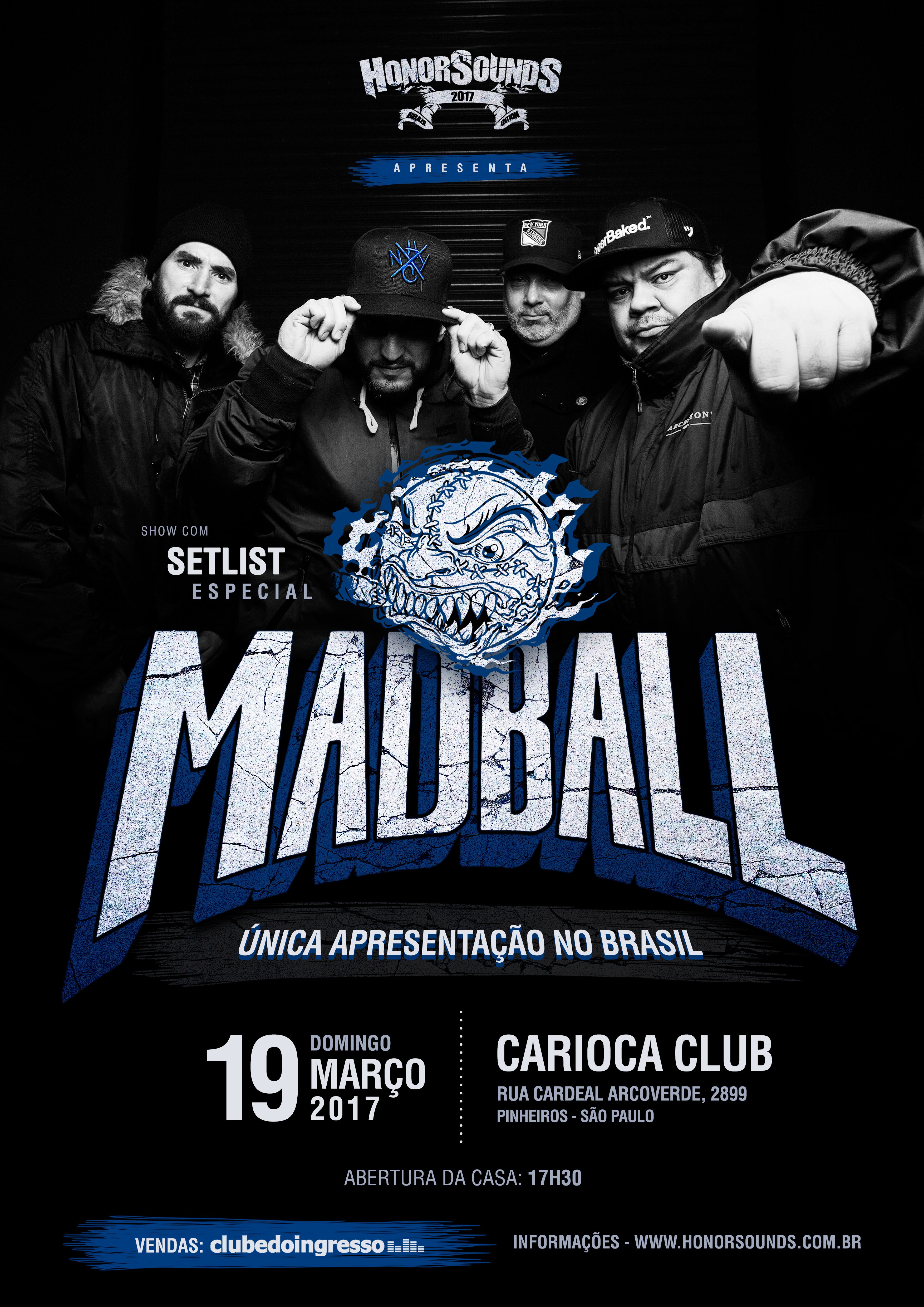 O grupo Madball voltará ao Brasil no primeiro trimestre de 2017 para show único em São Paulo. Participando da 14ª edição do projeto HonorSounds, a banda de hardcore nova-iorquina tocará no dia 19 de março no Carioca Club.