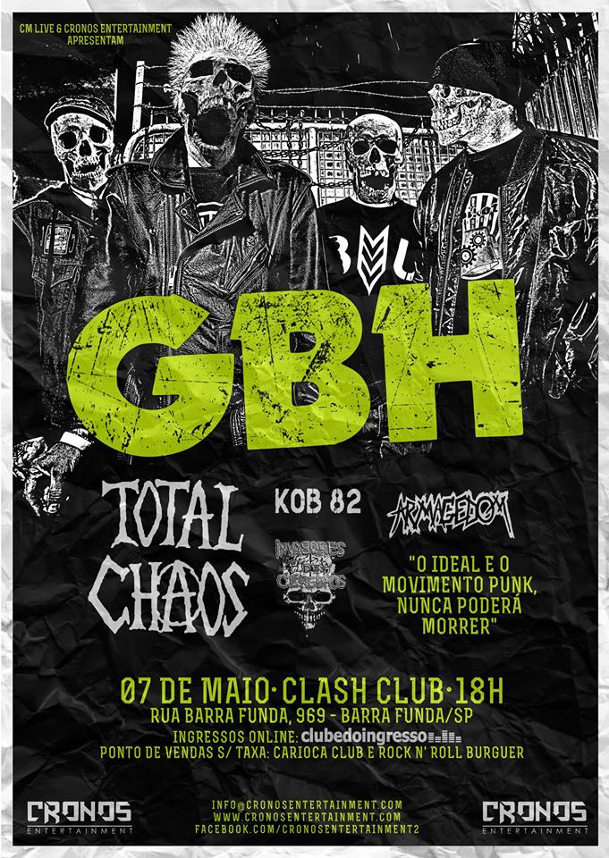 Quem também volta ao Brasil em 2017 é ninguém menos que o GBH. A veterana banda britânica de punk rock vai se apresentar em São Paulo.