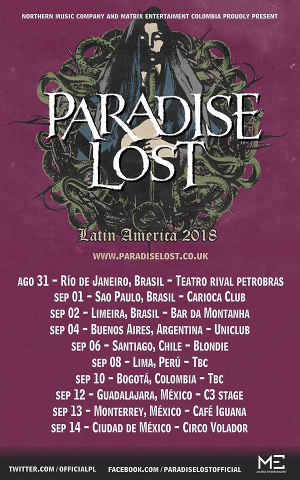 O Paradise Lost voltará novamente ao Brasil em 2018. O grupo britânico tocará no segundo semestre no País em três cidades: Rio de Janeiro, São Paulo e Limeira.