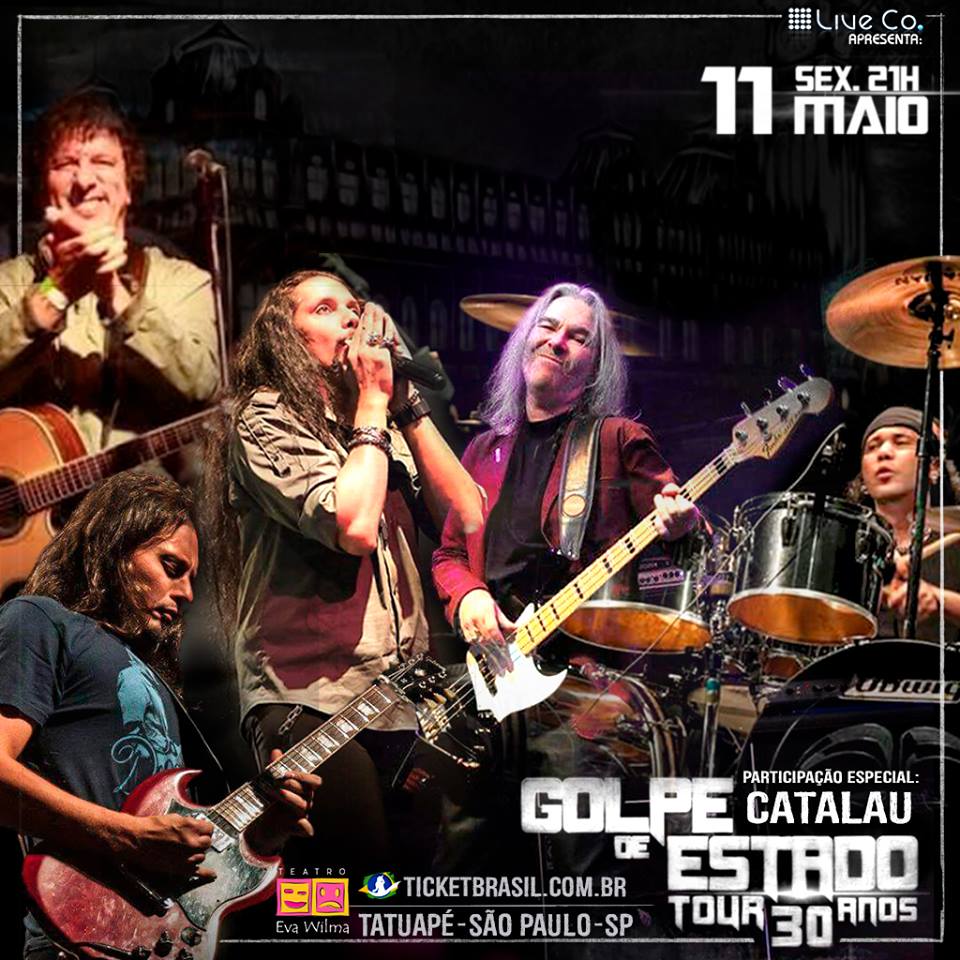 O grupo Golpe de Estado tocará em São Paulo no dia 11 de maio no Teatro Eva Wilma. A veterana banda brasileira fará o show de lançamento do CD “30 Anos ao Vivo”.