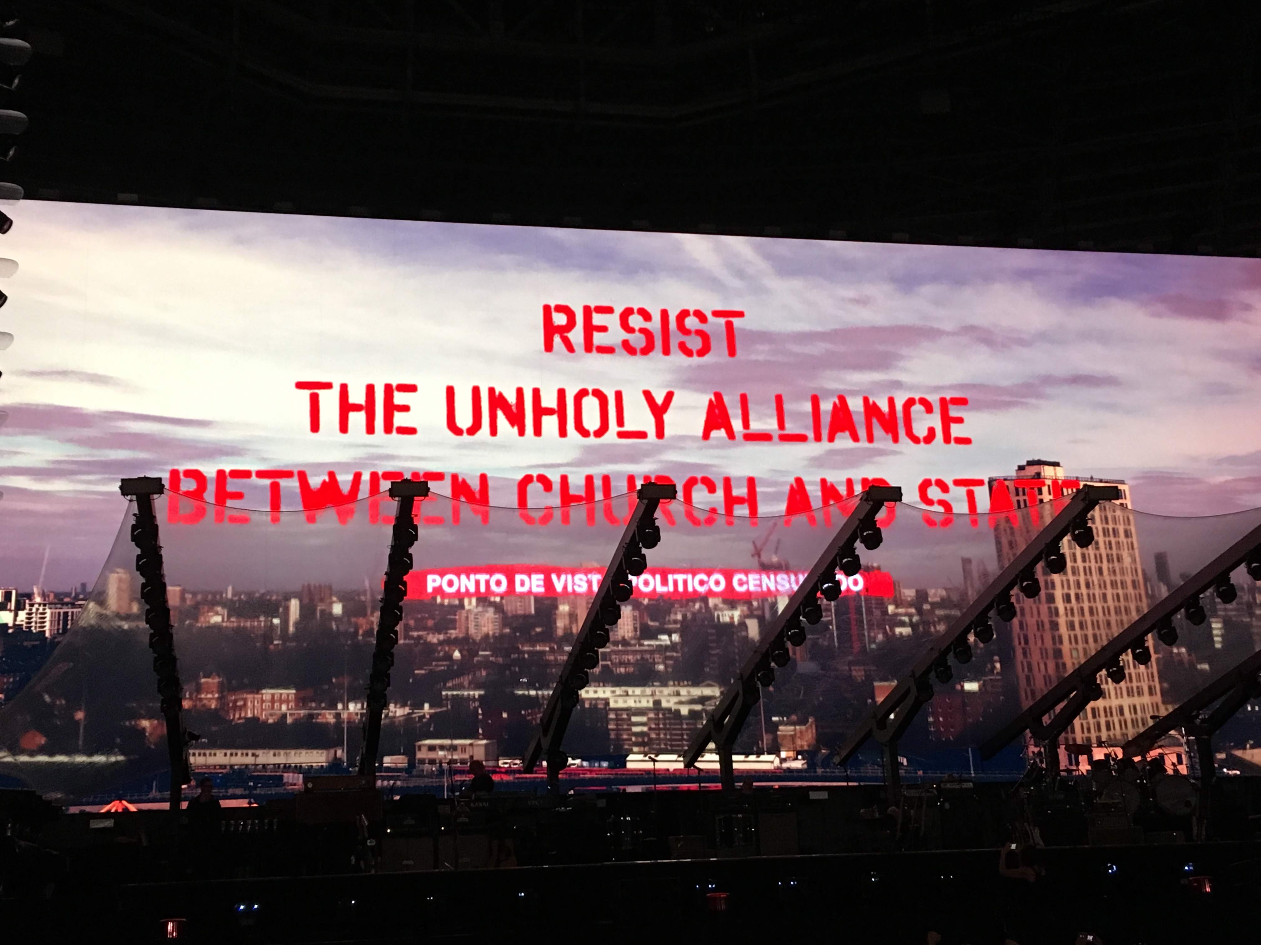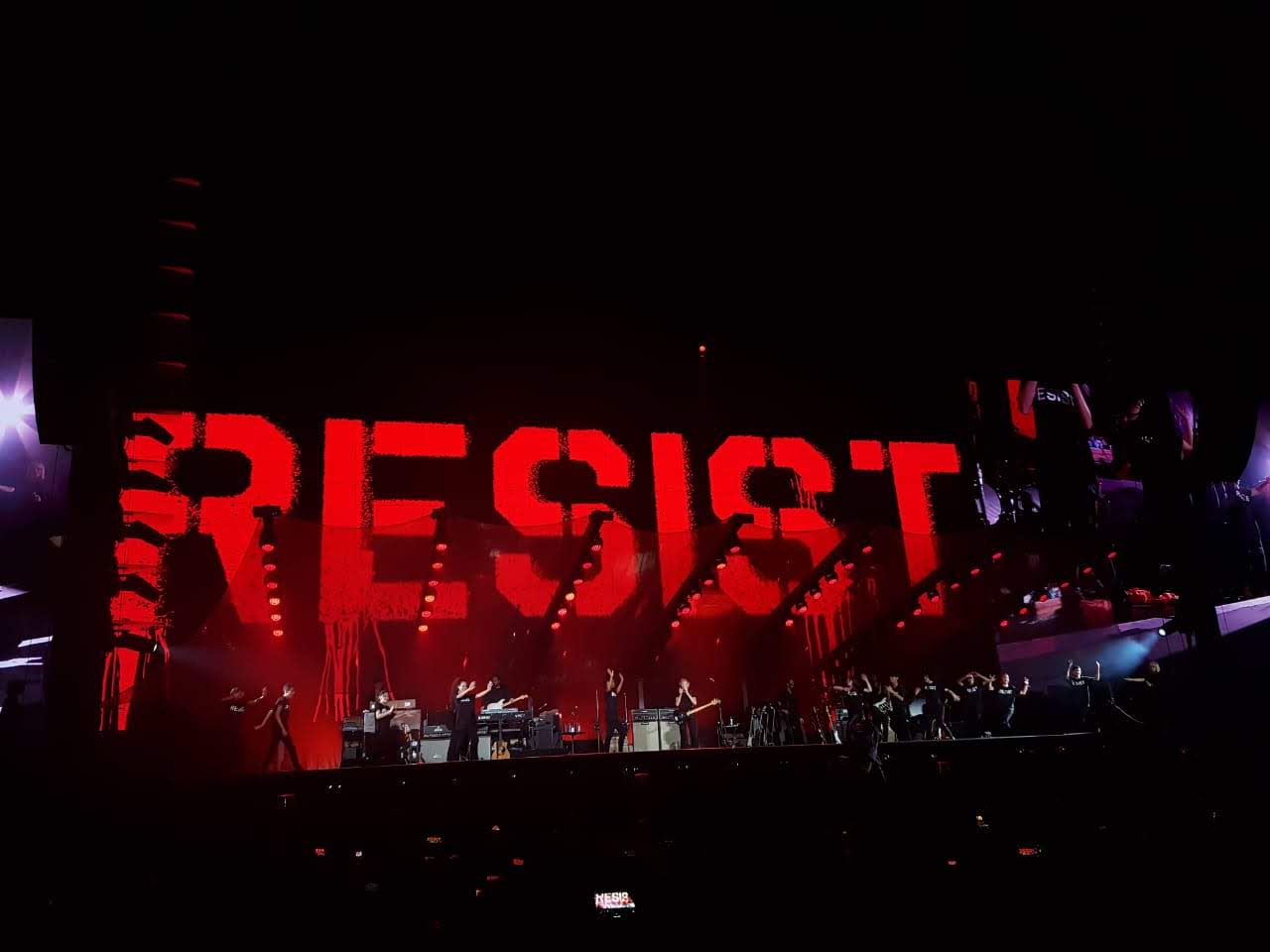 Ao longo do show, as canções eram complementadas com imagens no gigantesco telão de LED em alta definição. O clipe de “The Last Refugee”, com cenas que pretendem mostrar o antes e depois de uma mulher refugiada, cumpriu seu papel de conscientização e verteu lágrimas de parte da plateia, inclusive desta jornalista que vos escreve.