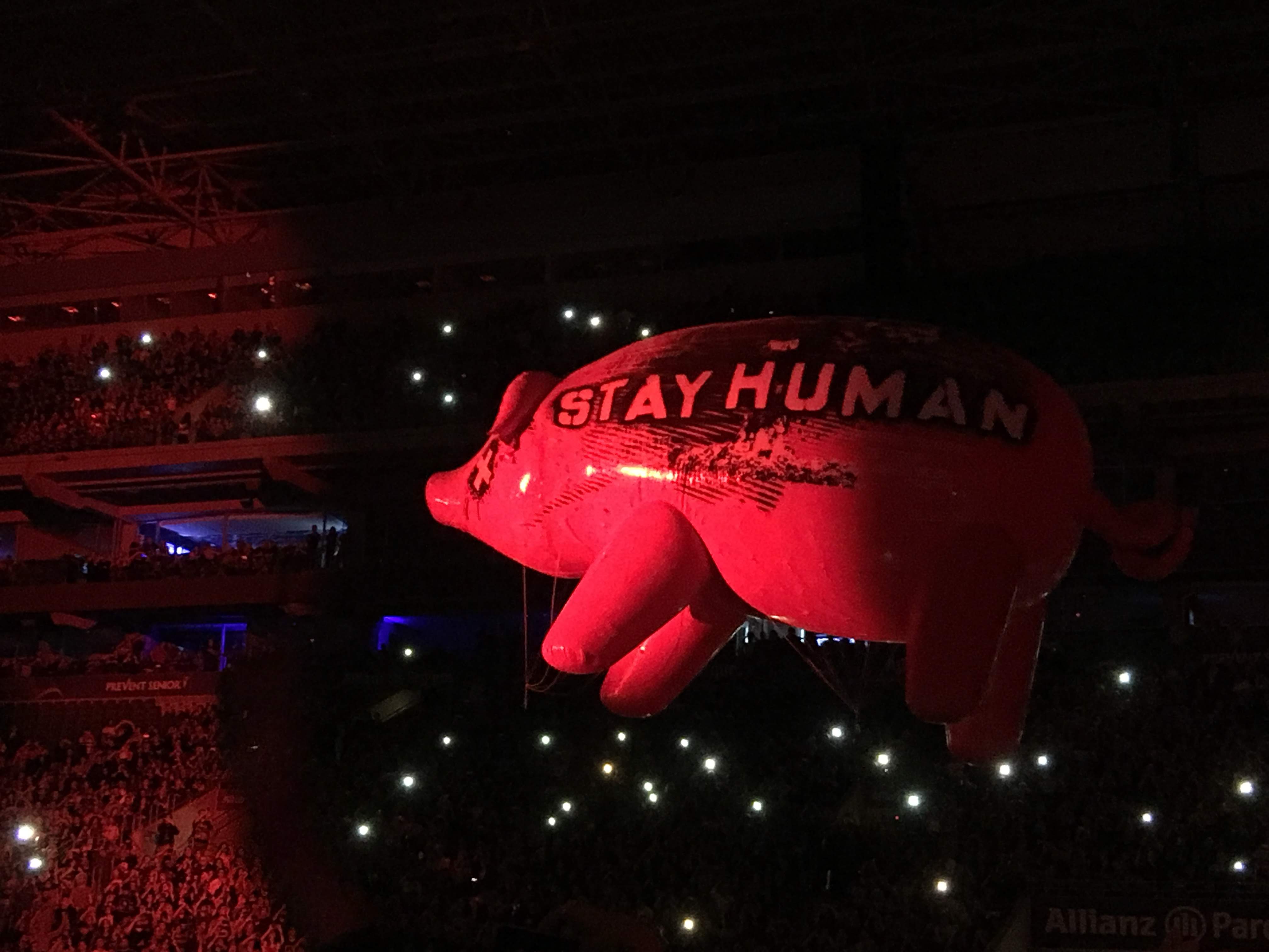 Na segunda parte do show, destaque maior para os recursos imersivos, como em “Dogs”, com os sons de latidos ecoando pelo sistema de som em todo o Allianz Parque. Em “Pigs”, o palco foi transformado numa usina, com direito a quatro enormes colunas imitando chaminés.