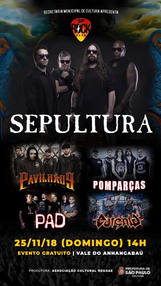 O Sepultura voltará a tocar na capital paulista no fim de novembro. A lendária banda brasileira de thrash metal será headliner de um festival gratuito que será realizado no Vale do Anhangabaú: o SP Rock Show.