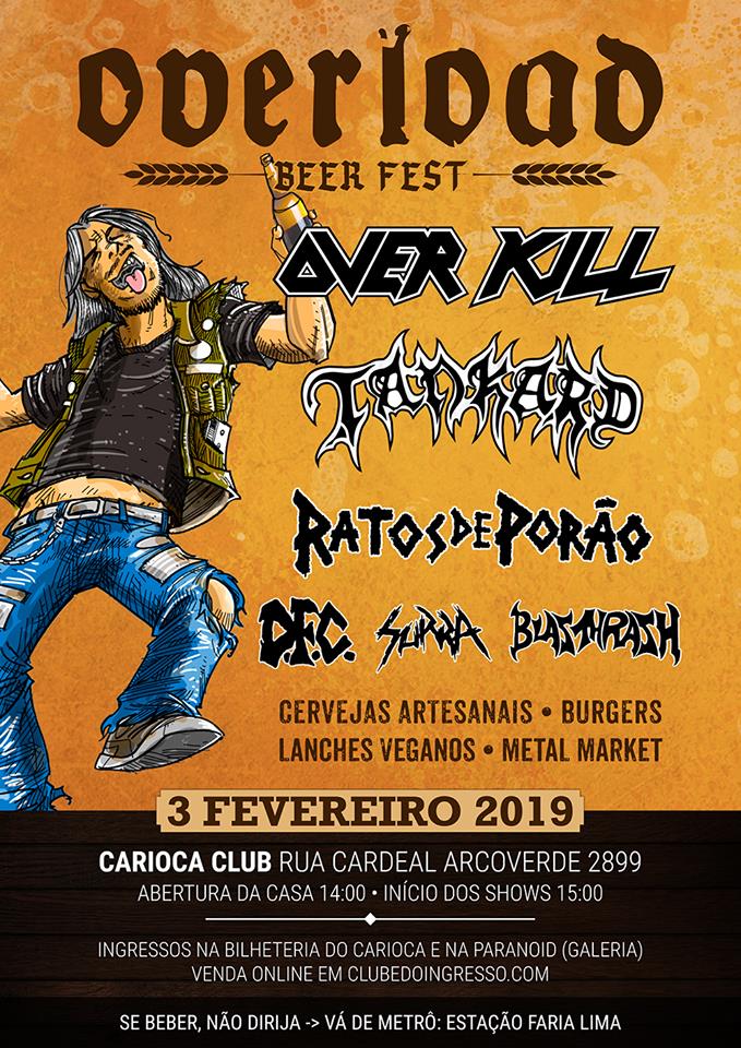 A cidade de São Paulo será palco de mais um festival de bandas de rock pesado de vertentes distintas neste primeiro bimestre de 2019. O Overload Beer Fest acontecerá no Carioca Club no dia 3 de fevereiro.