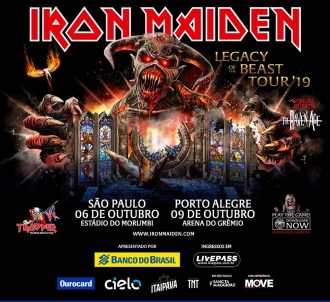 O Iron Maiden fará shows além do Rock in Rio 2019 no Brasil. Nesta segunda-feira, 13, a produtora Move Concerts confirmou que o lendário grupo britânico de heavy metal tocará em São Paulo e em Porto Alegre em outubro.