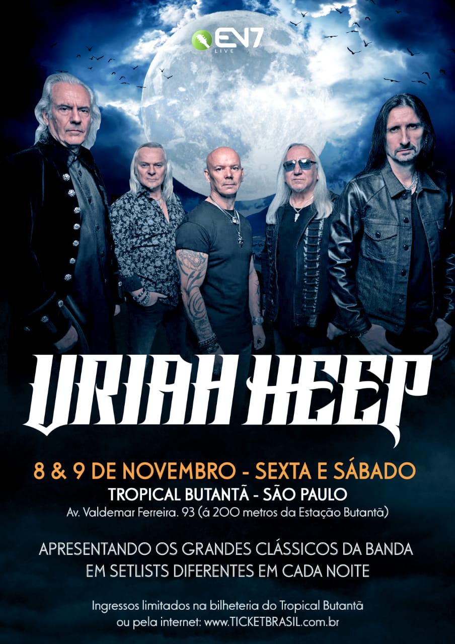 O Uriah Heep retornará ao Brasil em novembro para shows em São Paulo. A banda britânica de hard rock tocará nos dias 8 e 9 de novembro no Tropical Butantã.