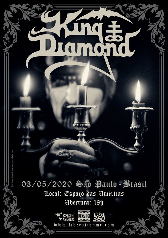 King Diamond voltará ao Brasil no primeiro semestre de 2020. Conforme a produtora Liberation MC, o eterno vocalista do grupo Mercyful Fate fará apresentação única em São Paulo no Espaço das Américas no dia 3 de maio.