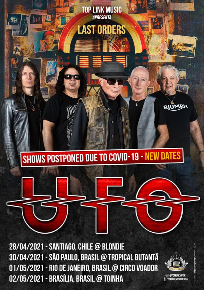 A turnê que a banda UFO faria no Brasil em maio de 2020 foi adiada para o primeiro semestre de 2021. O motivo, para variar, é a pandemia do novo coronavírus.