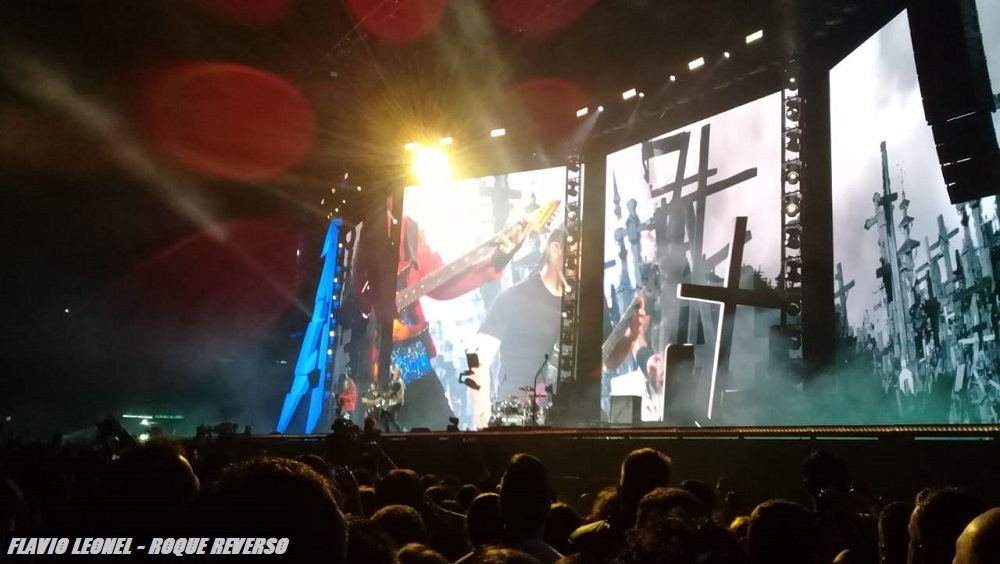 Quem já achava que os telões eram grandes antes de a apresentação começar, facilmente ficou extasiado com a proporção que eles tomaram com as luzes e os efeitos em tom alaranjado e vermelho em “Whiplash”. Talvez, tenha sido o maior telão em shows de rock no Morumbi, sem contar os de algumas turnês do U2, como a PopMart, em 1998, quando os telões, incrivelmente, acompanhavam a curvatura das arquibancadas do estádio. Com relação ao Metallica, não havia dúvida alguma: era o maior palco já trazido pelo grupo ao Brasil.