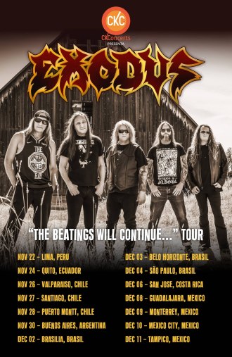 O Exodus voltará ao Brasil para shows em dezembro em três capitais do País. O grupo norte-americano de thrash metal tocará em Brasília, Belo Horizonte e São Paulo.