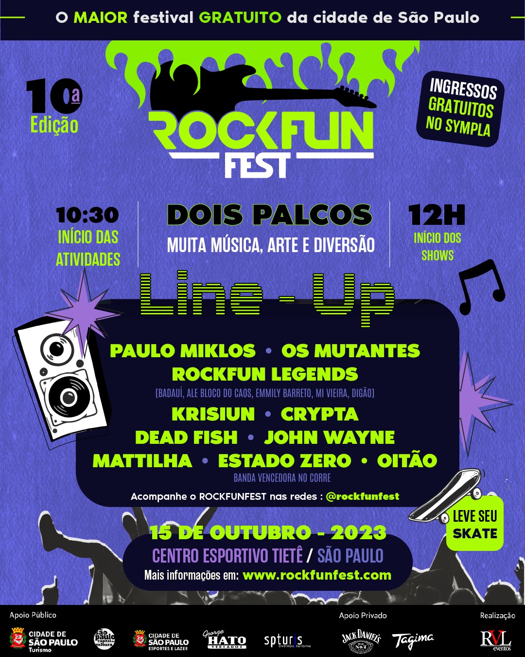A cidade de São Paulo receberá mais uma edição do Rockfun Fest neste mês de outubro. Gratuita, a 10ª edição do festival receberá veteranos e novos nomes do rock de diversas vertentes.
