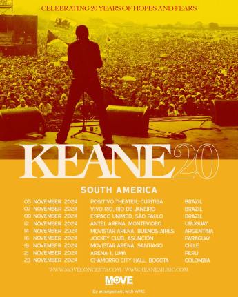Na capital paranaense, o Keane tocará no Teatro Positivo no dia 5 de novembro. Na capital fluminense, fará show no Vivo Rio no dia 7. Na capital paulista, vai se apresentar no dia 9 de novembro no Espaço Unimed.