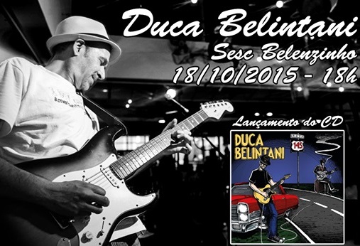 15-10-2015 -> O guitarrista Duca Belintani realiza no próximo domingo, dia 18 de outubro, no Sesc Belenzinho, em São Paulo, show de lançamento de seu mais novo trabalho solo, o disco “Rota 145”. No repertório, composições próprias e versões de consagrados clássicos do blues. A apresentação está marcada para as 18 horas. O preço dos ingressos varia de R$ 6,00 a R$ 20,00. Com mais de 30 anos de carreira, Duca atuou nos Anos 80 como guitarrista da Banda Controle e também do cantor Kid Vinil. O músico lançou seu primeiro disco em 2000, intitulado “MPBlues”. É, ao lado do jornalista Ricardo Gozzi, um dos autores do livro biográfico “Kid Vinil – Um herói do Brasil”. RЯ