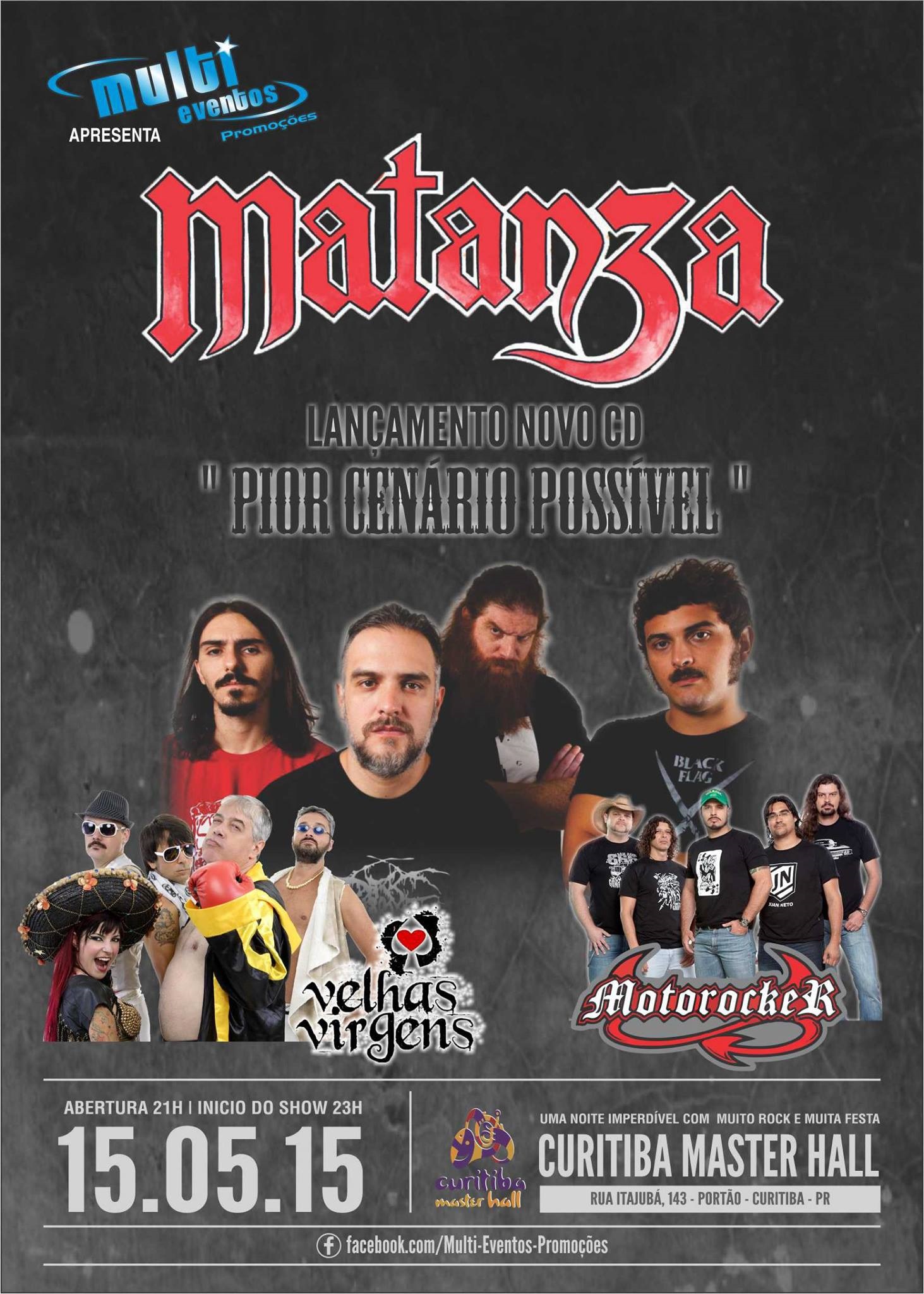 14-5-2015 -> Matanza, Velhas Virgens e Motorocker se apresentarão na sexta-feira, dia 15 de maio, no Master Hall, em Curitiba. A atração principal, o Matanza, aproveitará o evento para o lançamento, na capital paranaense, do novo álbum “Pior Cenário Possível”, que chegou ao público na primeira quinzena de abril. Ainda haverá a presença de uma quarta banda, o Fourface. A abertura da casa será feita às 21 horas e os shows devem começar por volta das 23 horas. O valor da entrada inteira para Pista é de R$ 120,00, mas há opções promocionais. Para a Área Vip Borda do Violão, o ingresso inteiro custa R$ 200,00. Para a Área Vip Frente ao Palco, a entrada inteira sairá por R$ 300,00. Não é apenas o Matanza que está com algo novo. O Velhas Virgens lançou o disco “Todos os Dias a Cerveja Salva Minha Vida” no ano passado. O Motorocker, por sua vez, lançou também no ano passado o álbum “Rock Brasil”, que sucedeu “Rock na Veia”, de 2010, e “Igreja Universal do Reino do Rock”, de 2006. Quem estiver, portanto, em Curitiba na sexta-feira, terá uma excelente oportunidade de fechar a semana com bons shows de rock n’ roll. RЯ
