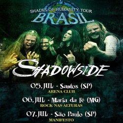 19-6-2019 -> O Shadowside está oficialmente de volta aos palcos do País. A banda da Baixada Santista apresentará seu mais recente álbum, “Shades of Humanity”, aos fãs brasileiros em apenas três datas: dia 5 de julho no Arena Club em Santos (SP), terra natal do grupo; 6 de julho no Festival Rock nas Alturas em Maria da Fé (MG); e dia 7 de julho no Manifesto em São Paulo (SP). Os ingressos para todos os shows já estão à venda. O quarteto formado por Dani Nolden (vocal), Magnus Rosén (baixo), Raphael Mattos (guitarra) e Fabio Buitvidas (bateria) desembarcou em 2018 nos EUA para a tour do álbum, realizando 29 shows ao lado da banda canadense Anvil. Foram 46 dias na estrada passando por 20 Estados norte-americanos. Agora, será a vez de o público brasileiro conhecer nos shows as músicas do álbum tocadas ao vivo e relembrar músicas antigas da banda. RЯ